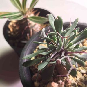 この夏たっぷり日光浴してひとまわり大きくなったグ ラ キ リ ス。 まだ葉が落ちないのでもう少し外で太陽浴びましょ。 オ ト ン ナ ・ ユ ー ホ ル ビ オ イ デ スもちょいと水あげ過ぎ?葉が徒長してる? ちょっと前に鳥にかじられて真ん中のトゲトゲ取れちゃった(^_^;) 鳥のバカ!バカ!