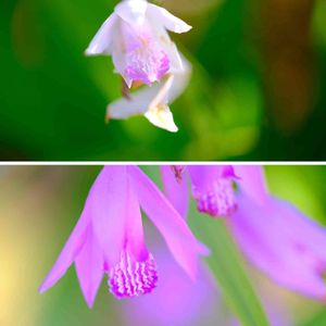 6月23日 今日のお花 💠 シラン 💠 シラン(紫蘭)白と紫 口紅シランです。 🏷コラージュ中間達 先月5月庭に咲いていました。