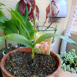 鉢植えのシラン(紫蘭)🤍✨✨ 野菜苗を買いに行った時に… チャーミングな✽.。.:*・゚🤍💜🤍✽.。.:*・゚シランさんをお迎えしました♪̊̈♪̆̈ 【追記】 トラプンさんに「口紅シラン」と名前を教えて頂きました。ありがとうございます❣️ 🏷️グリーンアクセサリー♪ 🏷️らんまん応援♪ 🏷️乙女色クラブ 🏷️花咲く乙女たち♡