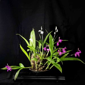 おはようございます🌱🌸 紫蘭の盆栽🌱🌸 この盆栽にはストーリーがあります❗ 昔々モミジの鉢植えに突然紫蘭が生えました❗ 数年後紅白の紫蘭の花が咲きました🌱🌸 モミジから分離して鉢植えにしました‼️ 数年後風が強い日に倒れて鉢が割れました‼️ そのままにしていましたらあちこちから芽吹きました❓⁉️ お皿にのせて今の姿になりました‼️
