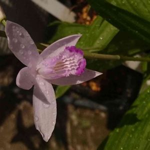口紅シランさん開花です💕 先月かな。 ホームセンターで見つけました。 一株だけ庭に植えてみましたよ〜😊 大人しく、品があるお花が咲きました❣️