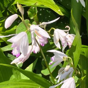 土曜の朝の撮影です。 口紅シランを教えていただきました。 たくさんの白の中にいくつか色が混じるものが見られますが、よく見ると白にもうっすらと色が出ているものがあるようです。