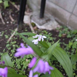 シラン[紫蘭] ラン科シラン属 左 わが家の白花シラン 右 花壇に咲いてた口紅シランです
