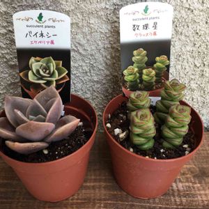 本日2軒はしごして、手に入れた多肉さんたち。 右2つは持ってるけど、また買ってしまったってやつです(^_^;)