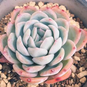 こんにちは💞 今日は曇りと雨の予報だったのに、朝からよく晴れていたので、植え替えたエケベリアをはじめ全部の多肉さんに水やりをしたら、曇ってきました~💦 明日、明後日と晴れの予報なので、大丈夫かな⁉️😅 1日1エケ💗 ラストスパート🏃 本日は、外葉は少し傷んでいるけれど、内側の葉はとっても綺麗な「すいれん」です✨💖 爪も優しいピンクで可愛いです(*ฅ́˘ฅ̀*)♡︎