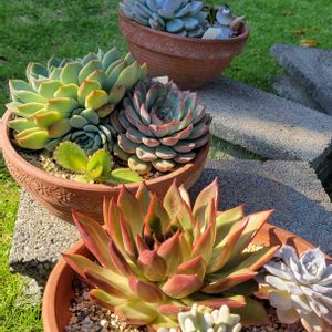 こんばんは😃🌃 今日は雨が降るという予報だったので、自然の水やりをと思い🚿多肉植物を外に出していましたが、結局降りませんでした😅💦 仕方なく夕方水やりをして、多少焦げたり小さくなったものの何とか夏を乗り切ってくれたエケベリアを並べてみました٩(ˊᗜˋ*)و✧*