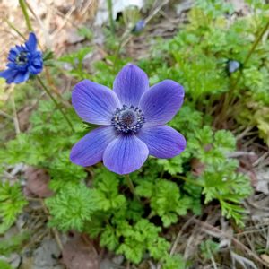 4.27 今日の庭から… ①アネモネ開花♪ ②ムラサキケマン ③紫露草 ④菫 ⑤ハルジオン 暑いと感じるけれど風がちょっと寒い日でした 春に咲くお花達… ちょっと困ったなぁ… 草取りしなさいとお空から言われてた?