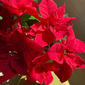 暖かいお部屋が大好きなポインセチア❤️ 斜めから差し込む太陽☀️の陽射しで 真っ赤に煌めき✨春めき待ち🌸🕊