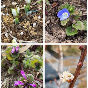 冬から 雪中四友 教えて頂きました 梅 蝋梅 茶梅 水仙 カンツバキはサザンカと椿の園芸種という事で 花が咲いていない梅やスイセンだったりですが覚書と言う事で😅
