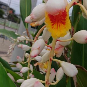 月桃(げっとう)の花が咲きました🎵 2年ぶりの開花です😍 蕾が桃🍑みたいなところから、この名前がついたようです‼️ 芳香剤、防虫剤、アロマ、健康茶としても大活躍です😉 花より葉っぱに香りがあり、背丈も2m位になりました😅