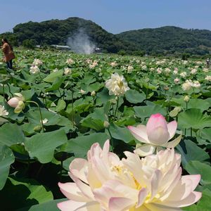 唐比のハス園 ちょっと時間が、遅かったかな🤔⁉️ でも、綺麗でした☺️💕 2haの畑に13種類、色んな種類の蓮が咲いてました🎵 ここの蓮根は、モチモチして美味しんですよ🤗 あまり出回らないので、幻の唐比蓮根と言われてます❗