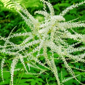 ヤマブキショウマ(山吹升麻)バラ科 長くて白色のホワホワ~😍。 花序の長さは、10cm~30cmくらいのお花。 雌雄異株で、雌株は細い穂状で、雄株はやや太い穂状に咲いて、雌株より目立つようです。 和名は、小葉の形がヤマブキに、花がサラシナショウマ(2021年10月6日投稿)に似ている事から付いた名前です。 若芽を山菜として🌿、根茎は薬用💊として利用されてます。 他に、アカショウマ(ユキノシタ科)やトリアシショウマ(ユキノシタ科)など、似たようなお花があります。一瞬の見た目では、区別するのに、私には難しいショウマさんです😓。 (日光植物園にて)