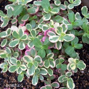 丘の風だより🌿 ちょっと前に投稿した、多肉と間違えて買ったポーチュラカ😳ピンクの縁取りが可愛いからまっいいか❗️と育ててたら、、なんと新芽は普通のポーチュラカの葉っぱではないですか⁉️💦 色水を吸収させてただけ❓🫢 これってどうなんですかーっ😵