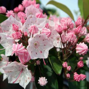 8月7日 今日のお花『カルミア』です。 【カルミア】 北アメリカ原産、ツツジ科常緑低木 コンペイトウのような形をした色濃い蕾を持ち、花が開くと皿形になる。 色は薄く模様が入って、蕾の様子とは全く異なった印象を受ける。 樹高:1~3m 花色:白,赤,ピンク,茶 開花時期:5~6月 吉本花城園@防府市