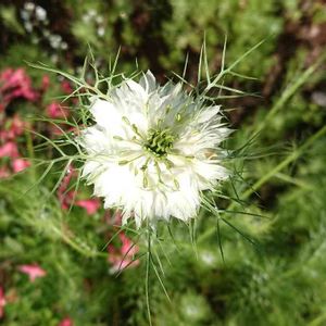 今日のお花 ニゲラ 一番先に開花したニゲラは、花壇ではなく、砂利とリュウノヒゲの間から生えてきたものでした。 ここならではの場所なので、自由に暴れてます。