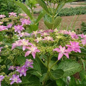 紫陽花 ピンクピンククッション (地植え3年目) 装飾花が可愛い❤️ 今年は一回り 株もお花も大きくなりました
