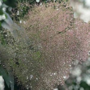 雨の合間、いつもより遠くに散歩。 神社のスモークツリーに綺麗な水滴が…。