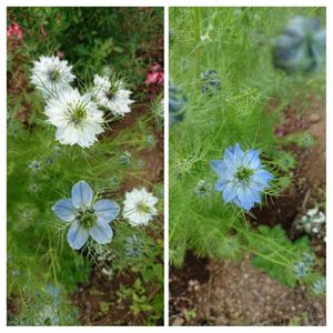 ニゲラ 今年 友人に頂いたまま植えて、白だけかと思っていたら ブルーの八重と一重も 嬉しい😃💕
