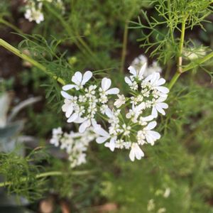 パクチーの花 こぼれ種から勝手に育つたくましい子