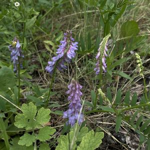 野に咲く花 葉と花の様子が フジに似ています🎶 葉先は巻きひげ🌀 伸びた花茎に青紫色をした 蝶型の花をぶら下げる💙💜 草藤(くさふじ) 別名 ウマゴヤシ ウマノアズキ ムラサキレンゲ マメ科🫘