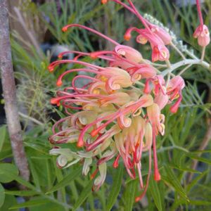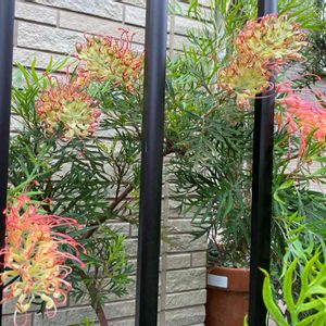 グレビレア ココナッツアイス こちらもたくさん咲いてくてました ⁽⁽٩(๑˃̶͈̀ ᗨ ˂̶͈́)۶⁾⁾ 塀とフェンスに挟まれたすごく狭いスペースなのに、、、ありがたい☺️