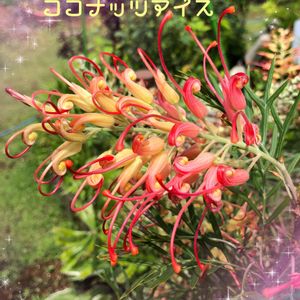 主人が育てているオージープランツ🌱 グレビレア ココナッツアイス❣️ かなり順調らしく綺麗に開花✨ ちょいと撮らせてもらいました😊