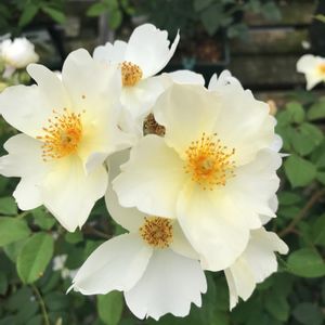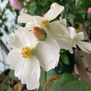 おはようございます。 バラ 'キュー・ガーデン(デビッド・オースチン)' です。 一重咲き。蕾から咲き始めは淡い黄色で徐々に白く変化します。花びらは薄くデリケート。たくさん咲くととても爽やかな雰囲気☺️になります。 昨年弱ってしまったので強く切り戻し植え穴を深く掘り直し、その甲斐あってか今年はやや元気💪🏻を取り戻しました😀。 ただこのバラの性質なのか🤔、他に比べてやや気難しい😣ところが見られます。 ○蕾が突然下向きになり、やがて枯れてしまう ○花びらが少し傷みやすい 鮮やかな色の花🌹が咲く品種とはまた違った魅力があり好きなバラですが、苦労と心配は尽きません😅💦