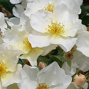 おはようございます😊 雨風が強い朝です☔️🌀🍃 昨日撮ったバラ キューガーデンが 今年も咲いてくれました🤍💛 蕾はアプリコット、咲き始めはイエローが入り、咲き進むとホワイトになります🎵 房咲でブーケのような咲き姿です🎵