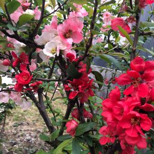 木瓜の花が今年も咲きましたと友だちから送られて来ました。キレイ❤️ これ、読めますか?あれっ? 「ボケ」ですね💕 わが家の低木は、ハナカイドウ、デュランタ、コートダジュールなどかな? 昨年、その友だちから蝋梅の苗木を頂きました。あまり大きくなっても…🤭