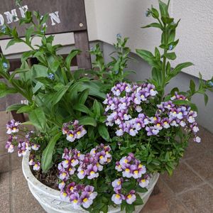 空色の寄せ植え ネモフィラ[インシグニスブルー] ワスレナグサ ラムズイヤー ラベンダー・ストエカス[バレリーナ] Taken on February 25, 2021
