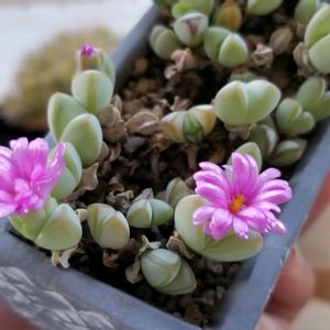 久しぶりに日が出て、 メセンが一斉に咲き始めました🌸 pic② スパルマンサス sp. Sphalmanthus sp.(40mi,NW.Sutherland) 3月9日に咲き始めて、ただ今7つ咲いてますꕤ.。 pic③ ルスキア・インデュラータ 昼、咲いてるのに気が付いた👀✨ ちっちゃいお花が可愛い💕 pic④ ルスキア・ネリー (旧ブラウンシア) 3月7日に1つ目が咲き始めて 今日2つ目が咲いた🌸🌸 pic⑤ 碧魚連 ⋯まだ咲いてるんですけど😅 右手前のマカイロフィルム・ブレビフォリウムは今年お花は無し🌼🙅🏻 冬型メセン🩷花盛り🌸 後付けで失礼🙏💦 🏷木曜日は桃色 参加させていただきます(⋆ᴗ͈ˬᴗ͈)”