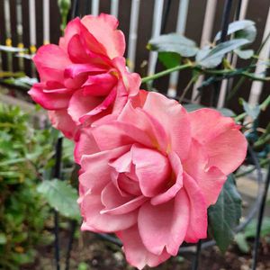 マイガーデン 🌹ツルバラ バロック アンティークなサーモンピンクに一目惚れで購入して2年 ………😅が、調べたらツルバラであることが判明😓 植え込む場所を確保に四苦八苦😭 日陰ながらもポチポチと咲いてくれます🌹 来年は株の充実に、頑張らねば💪
