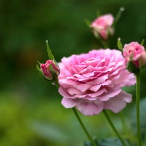 こんばんは^^ 今朝撮った写真ですが、バラ*コティヨンの蕾。 昨年一年生苗を購入し、育ててきたバラです。 枝がよく分岐する性質があって、 その分、蕾の数が増えます。 昨年までの8号鉢では、夏の水切れを頻繁に起こしそうなため、一番花が終わったら、鉢増しをする予定でいます。 とてもスリムな蕾。 萼片もきゅっと下に下がっていて、 つま先立ちでダンスをしてるみたいです。 アメリカ・Dr. Keith W. Zary作出・1999年 花色:藤色がかったピンク 花形:丸弁抱え咲き〜ロゼット咲き 花弁数:株の充実度合いで大きく変化する 花径:7cm 開花期:四季咲き性(春~秋) 樹高:1~1.2m 樹形:半直立性 香り:中香 撮影メモ: F1.8 1/800 ISO100 絞り優先モード