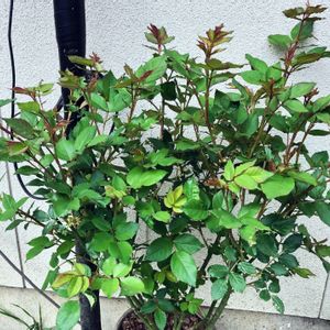 こんばんは^ ^🌿 バラはまだ咲かないから、 今日は、花と同じくらい個性がある、バラの葉っぱを🌿 やっぱり花のほうがいいってみんな言うと思うけど、葉っぱも個性があるし、みんな綺麗だと思います。 左上:バラ*ジークフリート 左下:バラ*ジュビレ デュ プリンス ドゥ モナコ 右上:バラ*コティヨン 右下:バラ*フレグラントアプリコット モナコさんなんて、花とおんなじで、若葉のうちは、葉っぱも覆輪みたいな感じで笑っちゃう^ ^ ま、そのうち、全部緑にはなると思うけど^ ^🌿