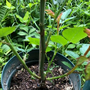 バラ*コティヨンの株元。一年生。 若いうちは、太くはないけどシュートが出やすいと聞いていました。 ほんと、種によって性質が違うので、みんな一様に管理していたら、上手くいかないのも出てきますよね。 コティヨン は、今のところ秋を楽しみにして、ピンチしてます^ ^