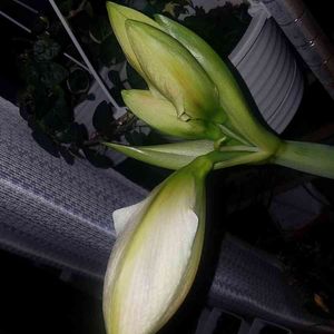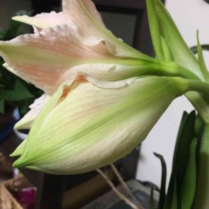 今日、急に この子が 家に やって来ましたぁ😳 アマリリス🌸 です‼️ 急に 電話が かかって来て、増えたから 1 つ、あげる... 花🌸が 咲いたから、、、と。。 このご近所さんに 5 年前に 私の 持ってるアマリリス🌸 の アップル ブロッサムを あげていたので、今度は 私のをあげる🌸と言う事 でした。 貰ったアマリリス🌸 は、 ダンシング クィーン 💕と言う 名前らしいです。 この方は、 ダンシング クィーンと言う 名前が 気に入って、購入したらしいです。 ちょっと 洋風の、派手な感じもありますが、それが このアマリリス🌸 の 良いとこ なのかな?... 1つ、お世話する子が 増えました。😁✨✨