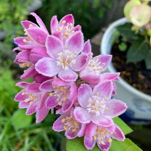 ウツギマギシェン(紅花梅花空木) 一昨年購入。植える場所決まらず、未だに鉢植え。 花はご覧の通りの可愛いさです。 🏷️愛しの紫 参加します