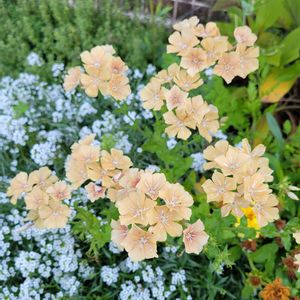シダルセア ロザンナ 小さいお花がまたかわいい🥰 ➁フロックス クリームブリュレ 去年のお花から種を取り 蒔いて 開花〜☺️👍 ➂ルドベキア アマリロゴールド 花芯が緑色してるよ🎶 ➃ロザリン ローズ 元気に咲いてれば🆗🙆♀️だね😉