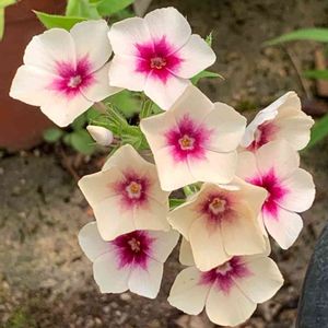 フロックス クリームブリュレ 美味しそうな名前🍦🧁 種まきした苗が、お嫁に来ました。 一年草ですが、脇芽からどんどん花芽があがって 夏のお嬢さん🌸です。どこかで聞いたね?