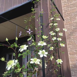 ビエネッタと白万重🌿 今年も 良く咲きます🌟 去年は テッセン寄りになってたビエネッタでしたが 今年は 大丈夫でした💓 ここ何年かは 立枯れすることもなく 沢山咲きます😊