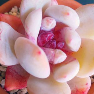 お粉の子達が元気なので*\(^o^)/* 集めてみました〜‼️☆*。 ↗️ラウイ 素焼き鉢からプレステラに植え替えてから元気です☺️💓 ↖️リラシナ 波打ってる葉の形がうっすらピンク💕 ↘️サンガ 白くてムッチリさん🤗 ↙️トロムソ この子は😅やっとここまで💦 という手のかかる子でした〰️。 去年の夏には調子崩し色が変色し 諦めてたんですが何とか生き残ってくれて ここまで大きくなってくれた😂👏✨ 手のかかる子程可愛いな〰️🙌💓