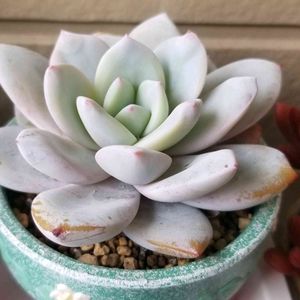 トロムソさん🌱(多肉食堂さん) 青白&お粉&むっちむち♡ 可愛すぎますー(*´꒳`*) 葉先のお粉がはげちゃってますが また復活してくれるかな…😋 今日もおつかれさまです☕️
