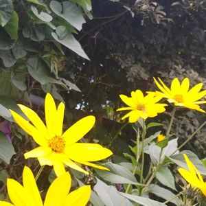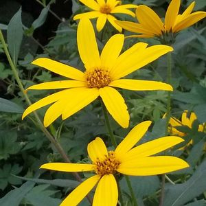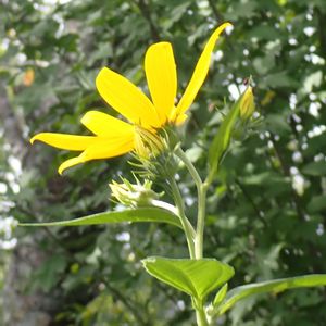 ビタミンカラーの黄色のお花。 キクイモのお花かな? お店で売られている芋のようなキクイモ(塊茎)はよくキンピラにして食べます。食物繊維やビタミンが多く低カロリーで健康野菜として注目されてるみたい。軽く火を通すとシャキシャキとした食感で味はごぼうに似てるような。煮込むとホクホクして美味しいです。ここまで書いたけど、このお花キクイモかしら😅