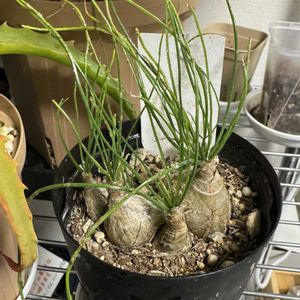 アルブカ・フミリス 一緒に育ててるトックリランと同じくらいポニーテール状態😅 植え替えてまだ半年くらいなんだけど球根がパンパン💧春には花が見られるといいな🪴