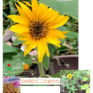 🏷️LOVE♡ひまわり 作りました(*≧∀≦*) 良かったら使ってください 雨上がりキレイに開花しました 記念に ゆみゆみ記念撮影しました ⑤ひまわり周りに、種蒔きっ子マリーゴールド ♦️ホワイトナイトは、DAISOじゃありません!通販で購入 🏷️コラージュして遊ぼ♡🏷️コラージュ仲間達 🏷️種から育てる♡🏷️かわいい発芽♡ 参加します