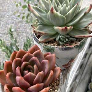 こんばんは🌙✨ 今日も暑かったですね🫠💦 みなさん、お疲れ様です。 先週、護国神社の蚤の市で、お迎えした可愛い彼女です🩷 エケベリア属 ホワイトナイト🌃 ホワイトじゃないけど…🤭 綺麗な紅葉❓ 姉さんと一緒で、ぷくぷくだねぇ(笑)