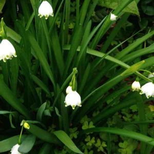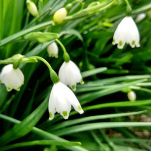 おはようございます😃 🏷️今日のお花 スノーフレーク ①②③私の庭のスノーフレーク (スズランスイセン) 下をむいてるので2枚目上、並べて撮って見ました☺️ ④散歩道で、とても大きな 株でした☺️😉 ⑤コラージュして見ました😌 (過去picより)