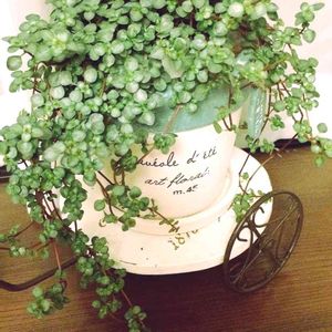 自作のリメ缶バックに、たまには多肉以外を・・・と思い、ピレアを植えてみました😃 やっぱりリメ缶バックには垂れる系が似合う〜✨