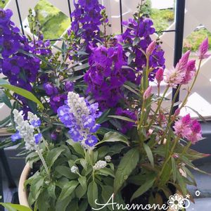 今日も晴れてくれましたが 🔆 ̨ ̨ ₍⌯́⌓⌯̀ ₎💧ムシムシ 久し振りに寄せ植えです𖤣𖥧𖥣。𖤣𖥧𖥣。𖧧 アンゲロニアアークエンジェルダークパープル💜 サルビアファリナセアストラータ💙 そしてピンクのケイトウ💗 今日も、良い一日を✨✨✨