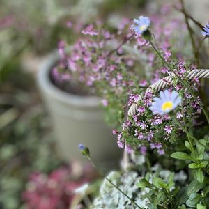 返り咲いて来たお花達🌸🌿 ✾カンパニュラ・ラプンクロイデス ✾やっと花数が増えてきた斑入りのブルーデージー ✾越冬し、夏越しも出来たオステオスペルマム ✾一輪咲いてきたアケボノフウロ ✾零れ種と種蒔きからの開花をしてくれた亜麻 ✾また、可愛らしいお花を見せてくれたポーチュラカ・ウェデルマニー 少しですが嬉しい開花です♡